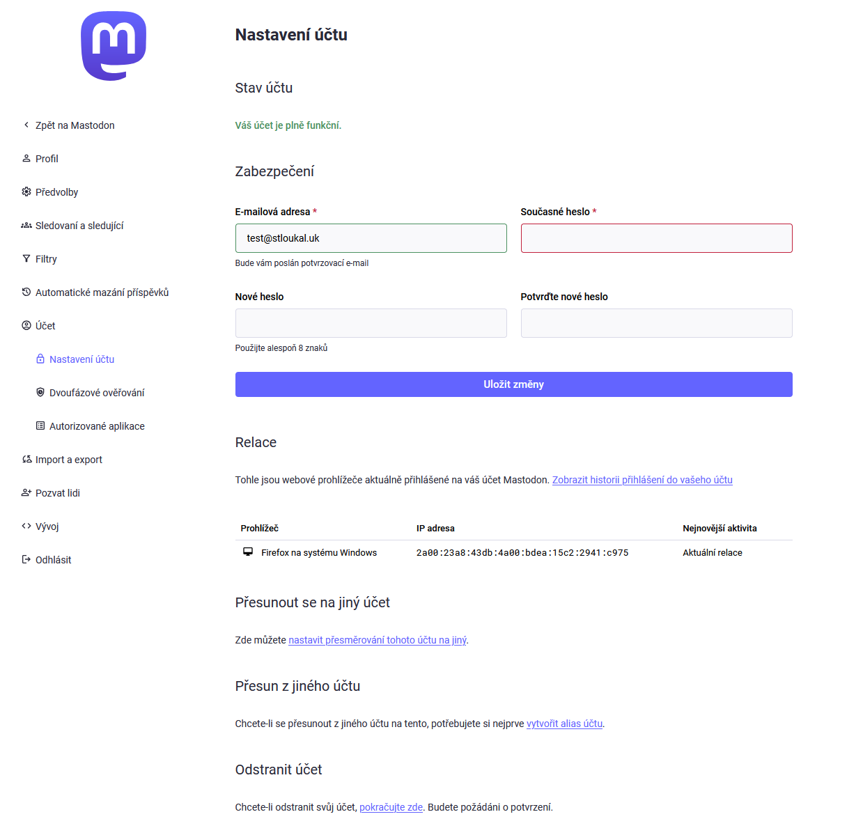 Migrace Mastodon účtu