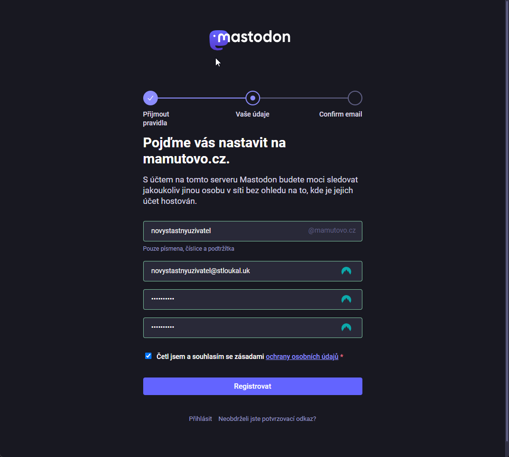 Potvrdíte, že souhlasíte se zásadami a pak už stačí jen klik na registrovat.